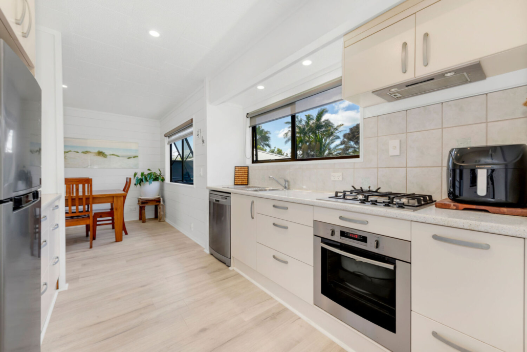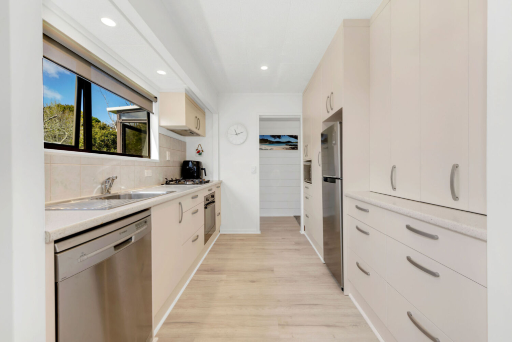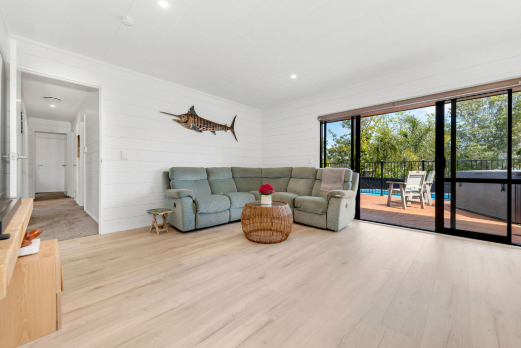 Big flat lawns, plentiful off-street parking, and room to expand – perhaps a pool or further extension – complete the picture. From this quiet retreat you’re only a 650m stroll to Shelly beach and close to Beachlands School and the Pohutukawa Shopping Centre. It’s just a short drive to Rydges Formosa Golf Course and Pine Harbour Marina with its 35-minute ferry to the CBD.